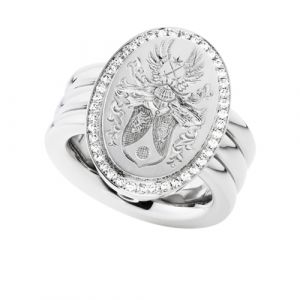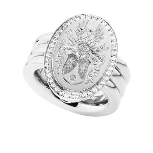 Wie in diesem Beispiel, einen Siegelring aus Platin mit präziser Wappengravur und Brillanten
